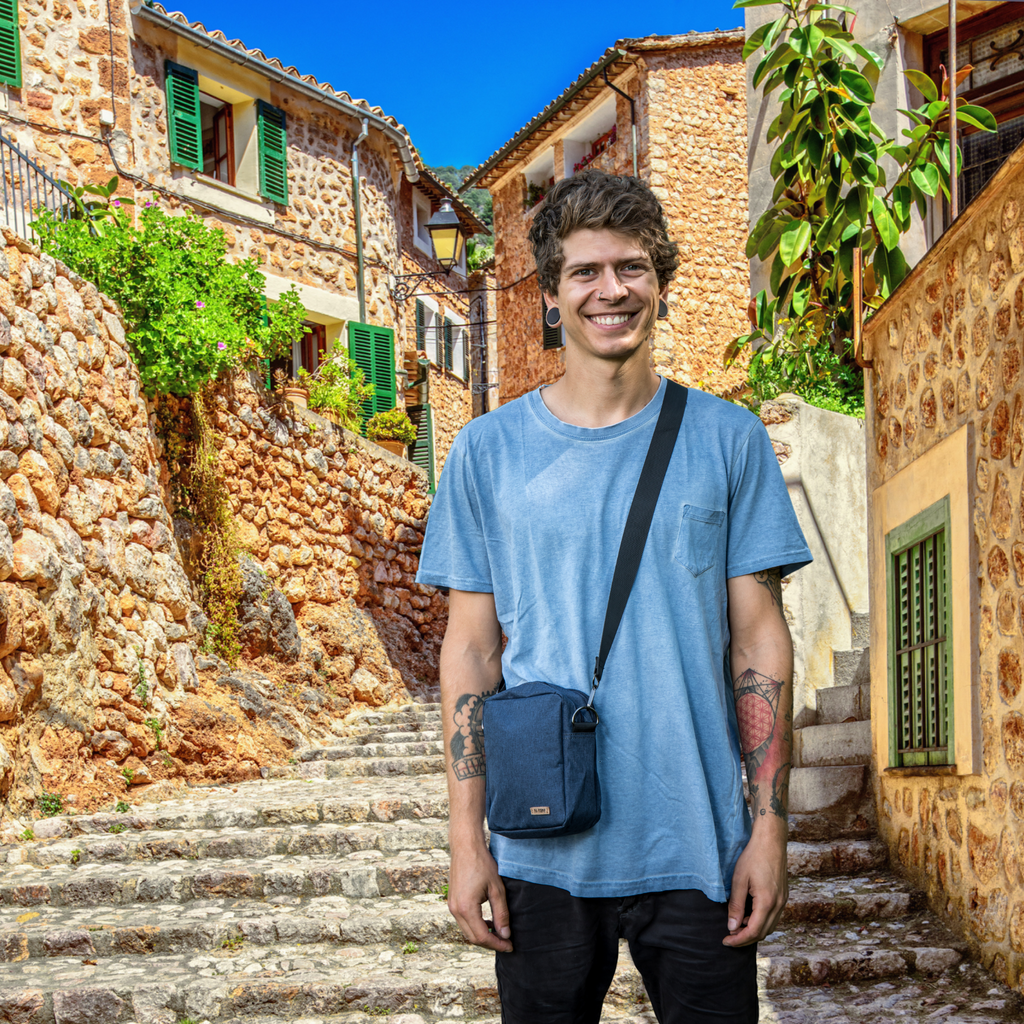 Unsere Männertasche Mini Bodybag Taschen werden direkt am Körper „Body“ über der Schulter getragen. Der abnehmbarer Schulterriemen kann je nach Körpergröße individuell eingestellt werden. Die Tasche verfügt über ein 2 Hauptfächer und einen Innenfach mit Reißverschluss. Ausreichend Platz für Geldbeutel, Smartphone und ist vorhanden, somit ist die Männertasche Mini Bodybag ideal für Arbeit, Freizeit, Schule/Uni oder einen Ausflug in die City geeignet.